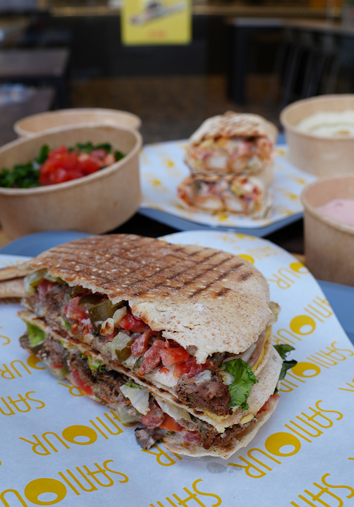 La Saniour, sandvișurile noastre sunt 100% vegane și coapte proaspăt în fiecare dimineață. Sunt umplute cu ingrediente proaspete și savuroase și vin într-o varietate de arome — de la opțiuni tradiționale libaneze precum shawarma și falafel, până la o gamă largă de umpluturi vegane